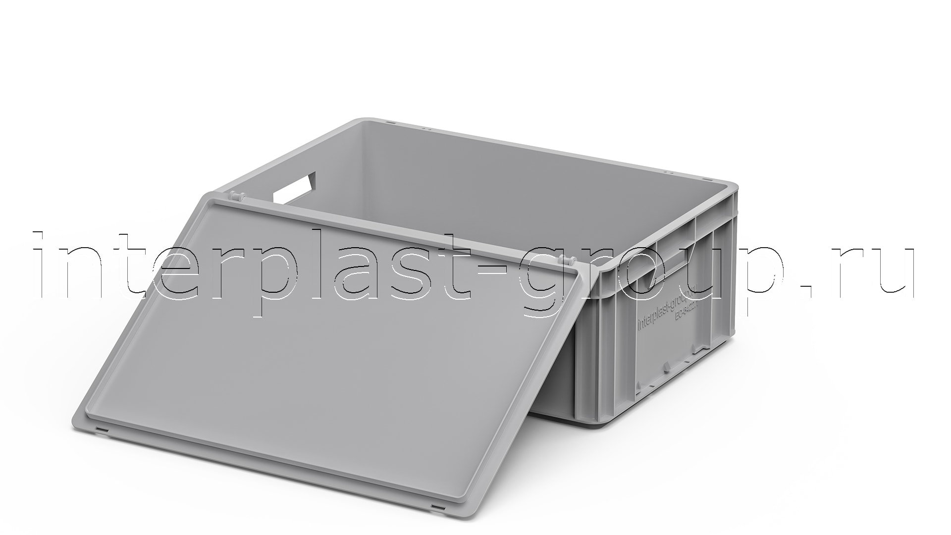 Евроконтейнер открытые ручки/сплошное дно (серый), 600x400x220 мм