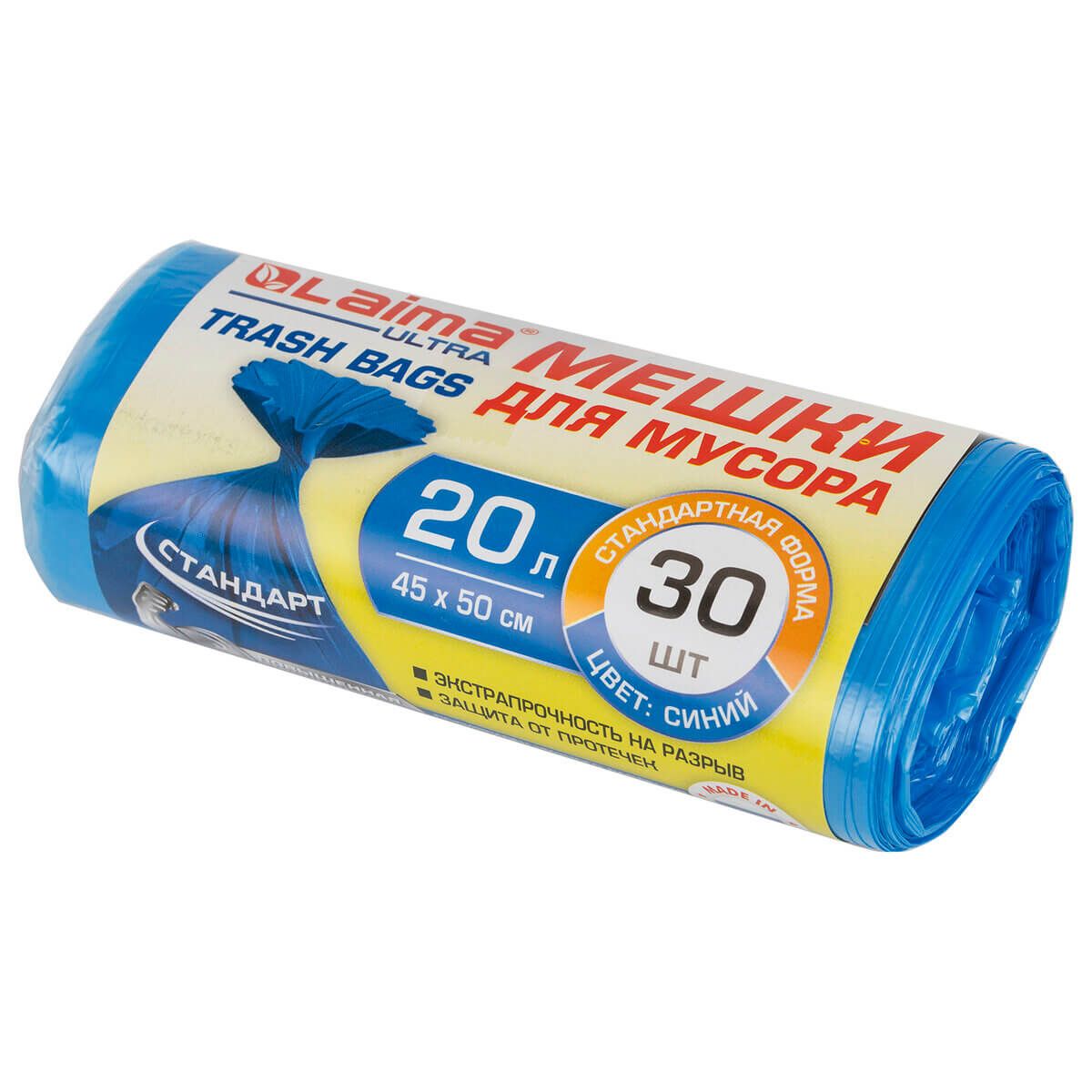 Мешки для мусора 20 л, синие, в рулоне 30 шт., ПНД, 8 мкм, 500х450 мм, LAIMA, 607682 в Луганске