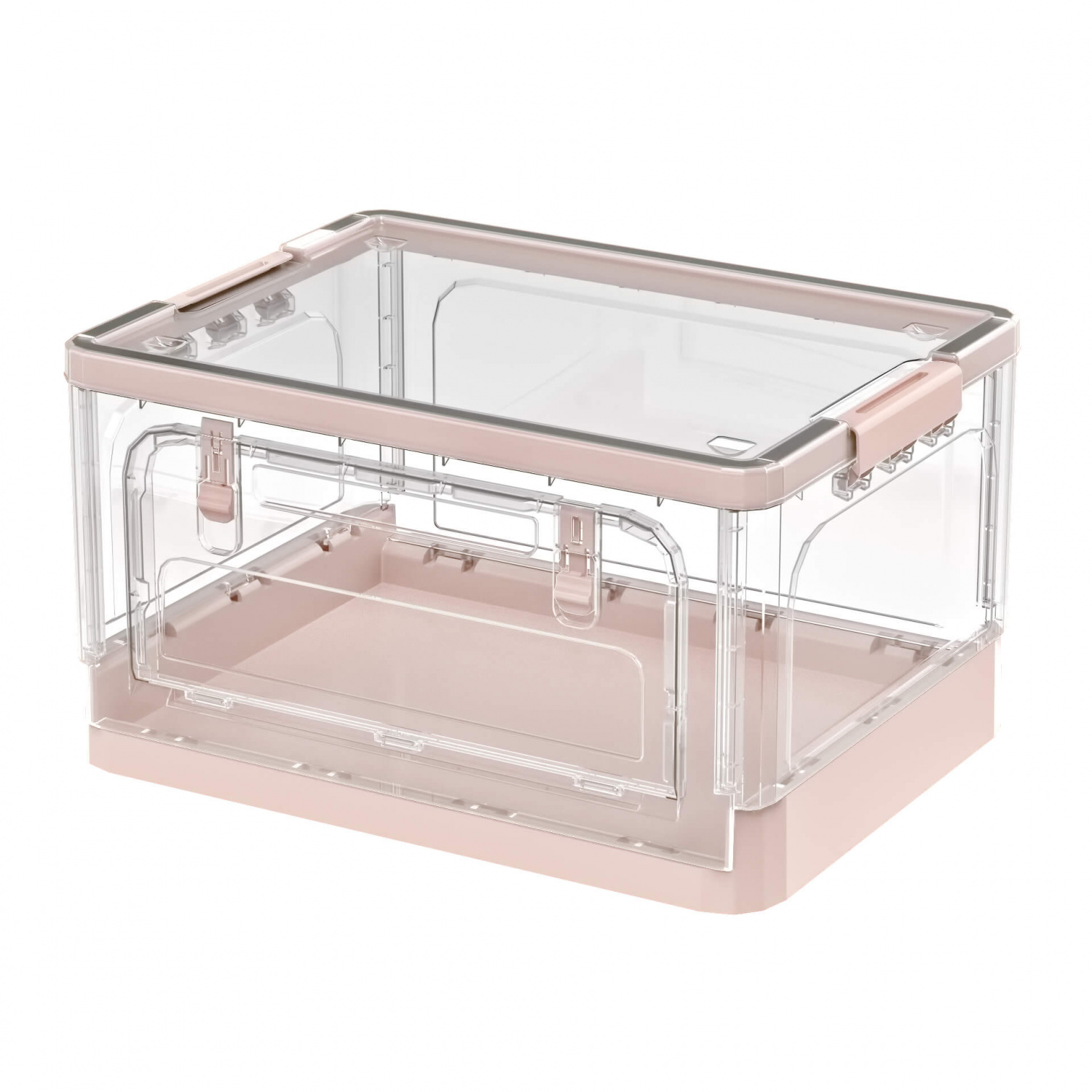 Функциональный пластиковый складной ящик – идеальное решение для организации пространства. Прозрачные стенки позволяют легко видеть содержимое, а нежно-розовое дно придает изделию аккуратный и современный вид. Пластиковый контейнер отлично подходит для хранения одежды, игрушек, бытовых принадлежностей, документов и других мелочей.