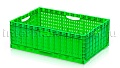Складные ящики разработаны и спроектированы для хранения и перемещения плодо-овощных культур как внутри производства, так и между торговыми точками и складами. Благодаря функции складывания значительно экономят место при использовании в качестве возвратной тары. Перфорированные стенки обеспечивают сохранение свежести и сочность продуктов перфорации абсолютно на всех стадиях логистики. Штабелируются на паллетах 1200х1000 и 1200х800.