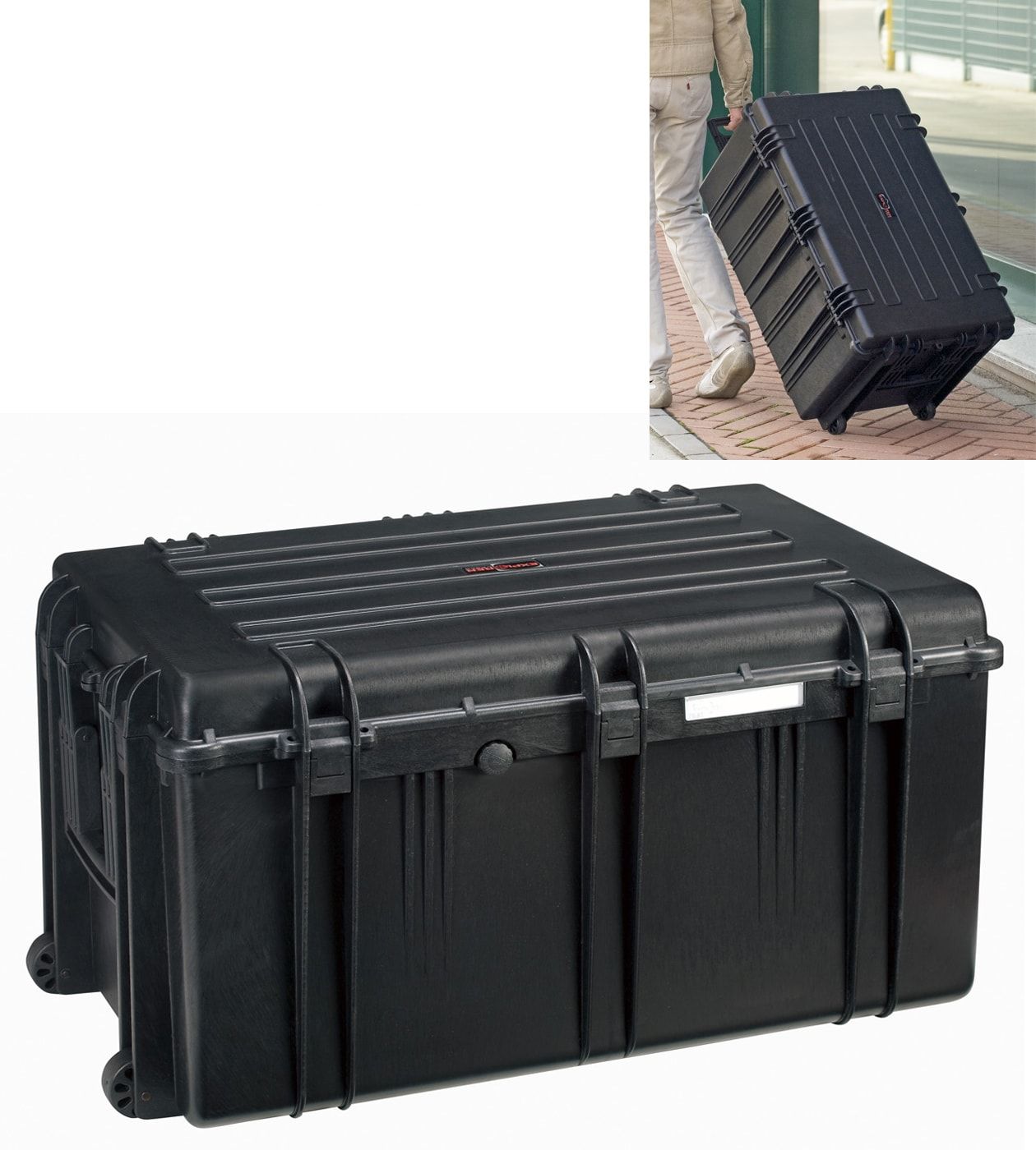 Крупногабаритные контейнеры с колесами и боковыми ручками. Ручной продувочный клапан и уплотнительное кольцо. Идеально подходит для хранения большого количества чувствительного оборудования. Самосмазывающиеся свободно вращающиеся колеса.